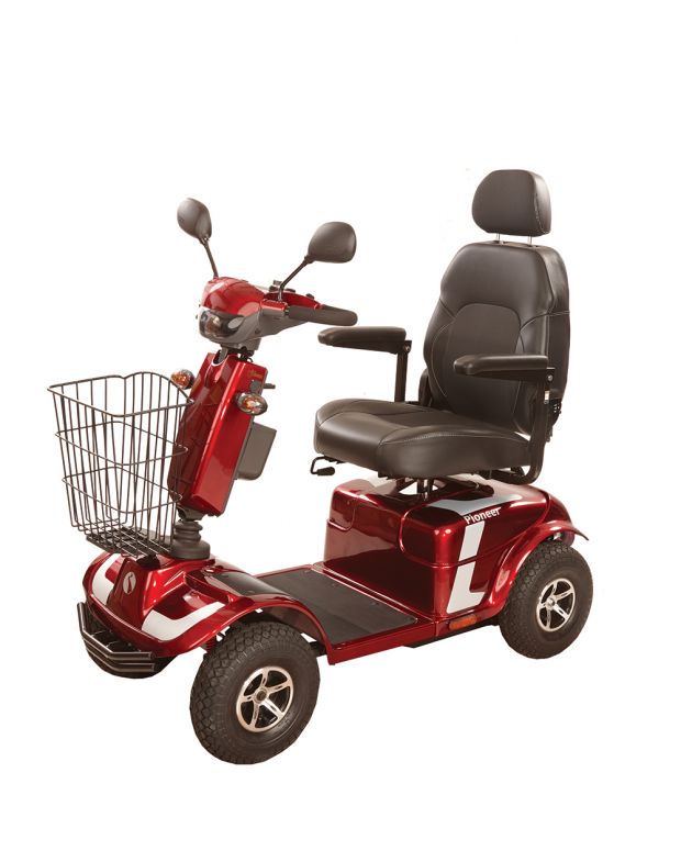 It features a delta-bar tiller with adjustment, a sliding swivel seat with headrest and padded arms as well as showerproof switches and a large basket making the Pioneer one of the most popular scooters on the market.